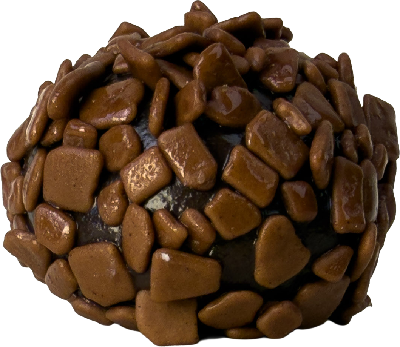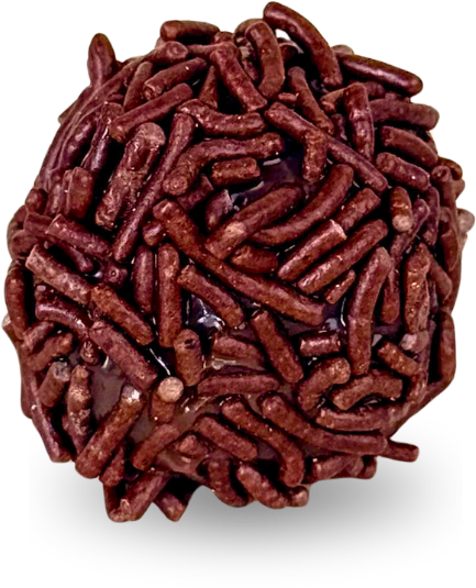 Brigadeiro Brigadeiro tradicional feito com chocolate e envolto em granulado.