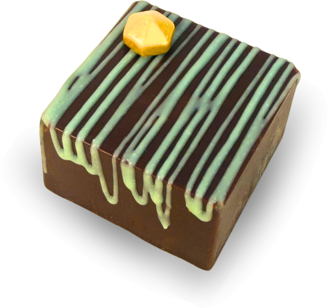 Bombom Dubai Bombom sofisticado com combinação intensa de sabores do creme de pistache e a crocância do Knafeh.