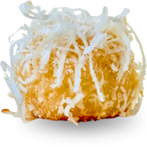 Ouriço de Coco Queimado Doce de coco com toque levemente caramelizado, finalizado de forma marcante.