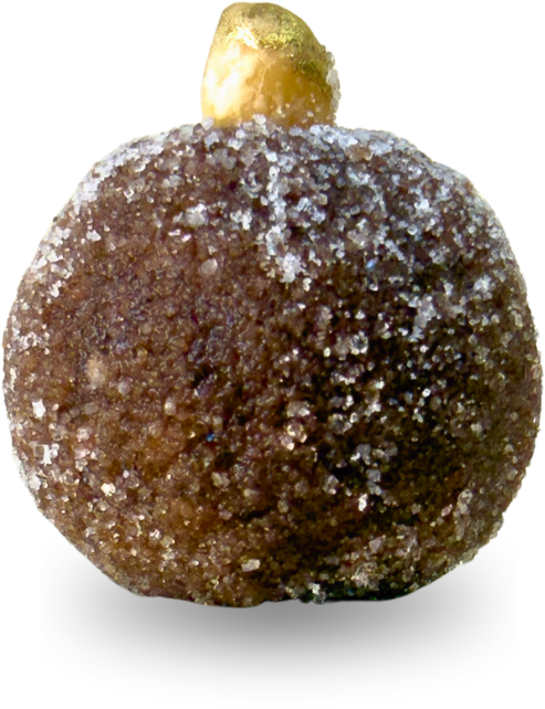 Cajuzinho Doce de amendoim com textura macia, finalizado com açúcar e amendoim.