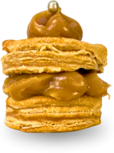 Folhado Doce de Leite Massa folhada crocante recheada com doce de leite cremoso.