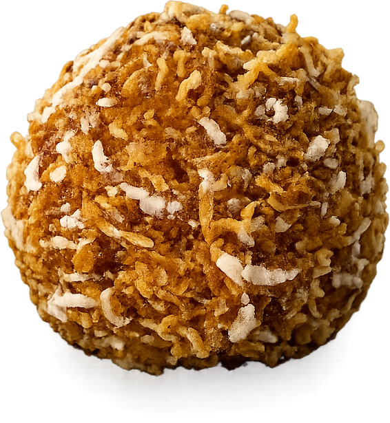 Brigadeiro Coco Fresco Brigadeiro branco preparado com coco fresco e finalizado com coco ralado.