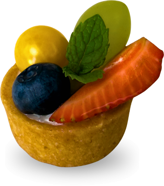 Tartelete Frutas Frescas Base crocante recheada com creme suave e coberta com frutas frescas.